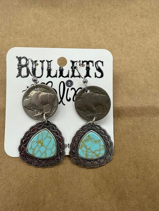 Bullets to Bling Royal Blue Bow/Heart Earrings